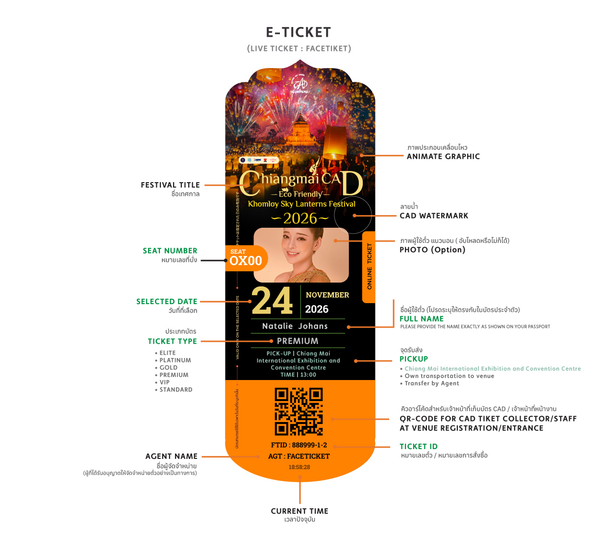 チェンマイ CAD コムロイ・スカイランタンフェスティバルに入場するために、eチケットを印刷する必要はありますか?いいえ、eチケットを印刷する必要はありません。携帯端末に表示されたeチケットのリンク、またはeチケットのスクリーンショットを提示するだけで入場できます。